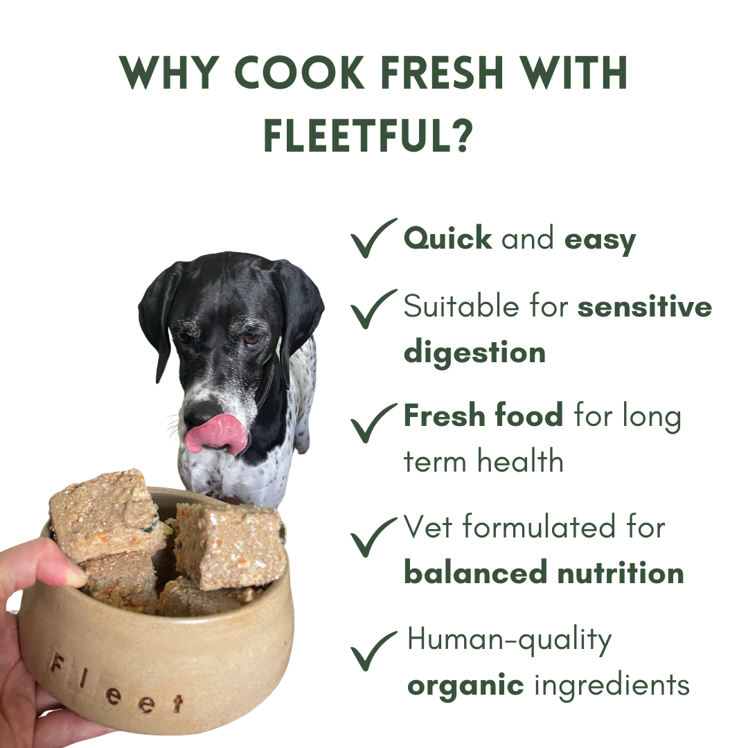 Just add vegetables to our vet formulated protein powder for a balanced meal for your dog